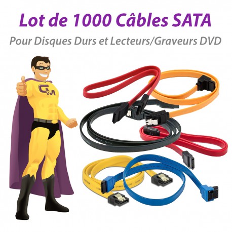 Lot de 1000 câbles SATA / Serial-ATA - Norme E23714 - Longueur, formes (droit ou en pivot) et couleurs variables - Garantis 6 mois.