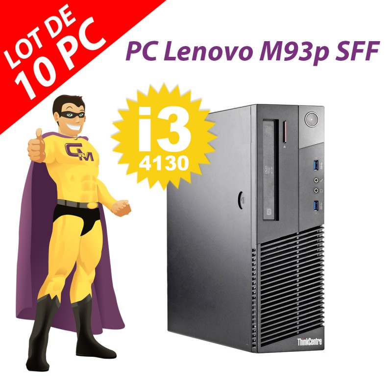 Lot de 10 PC Lenovo ThinkCentre M93p SFF (Slim) - Intel Core i3-4130 3.4 Ghz (3 Mo) - 4 Go DDR3 - Disque Dur 3,5" 250 Go - Graveur DVD - Clef Wifi USB - Windows 10 - Garantis 1 an.