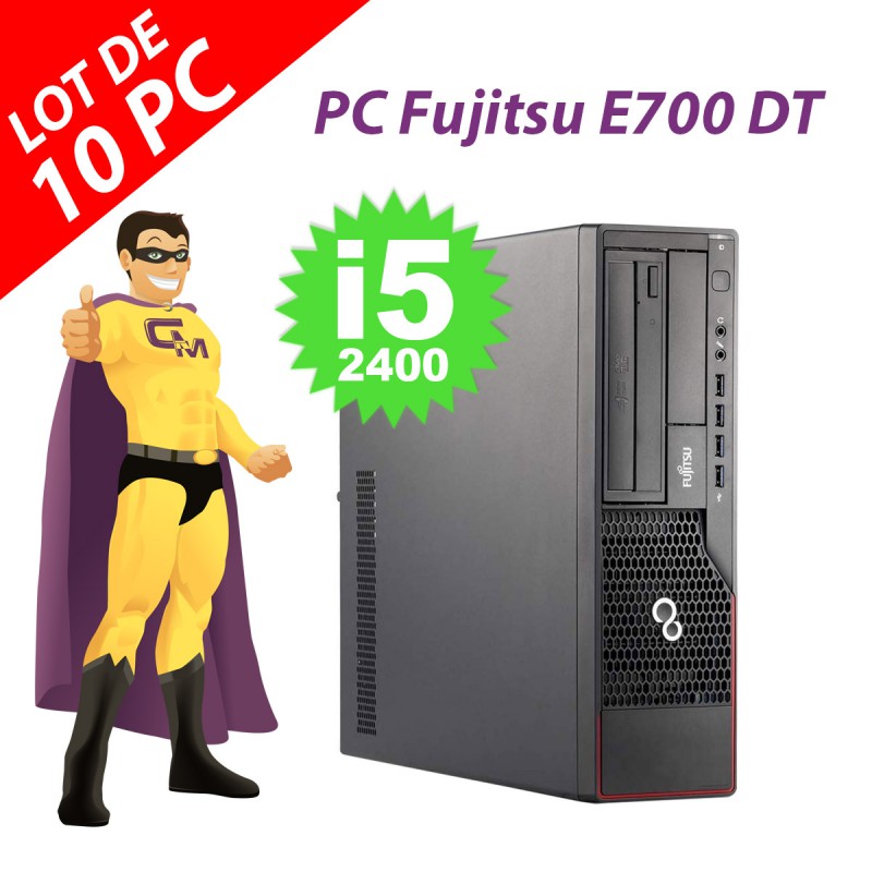 Lot de 10 PC Fujitsu Esprimo E700 DT - Intel Core i5-2400 3.1 Ghz (6 Mo) - 4 Go DDR3 - Disque Dur 3,5" 250 Go - Graveur DVD - Clef Wifi USB - Windows 10 - Garantis 1 an.