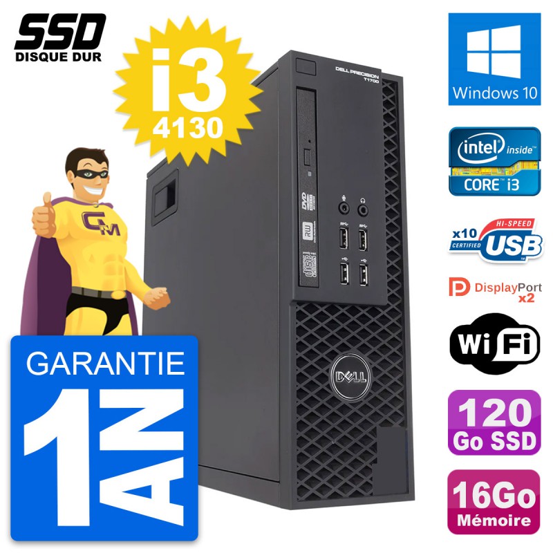 PC Dell Precision T1700 SFF (Slim) - Intel Core i3-4130 3.4 Ghz (3 Mo) - 16 Go DDR3 - SSD 120 Go - Graveur DVD - Clef Wifi USB - Windows 10 - Garantie 1 an.