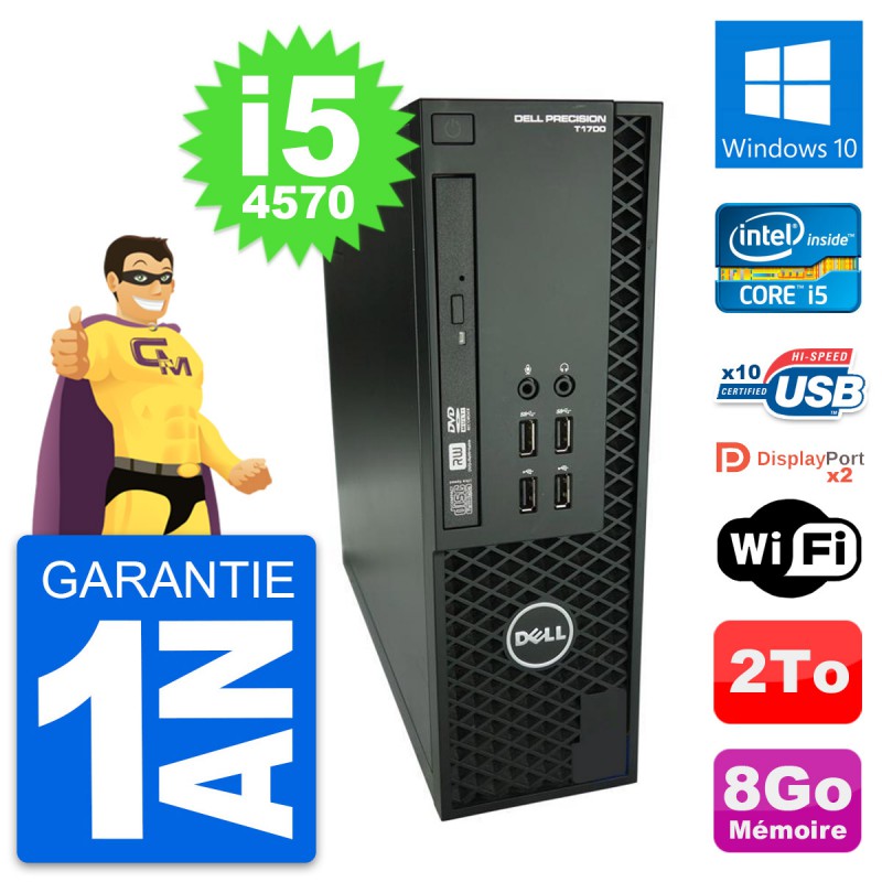 PC Dell Precision T1700 SFF (Slim) - Intel Core i5-4570 3.2 Ghz (6 Mo) - 8 Go DDR3 - Disque Dur 3,5" 2 To - Graveur DVD - Clef Wifi USB - Windows 10 - Garantie 1 an.