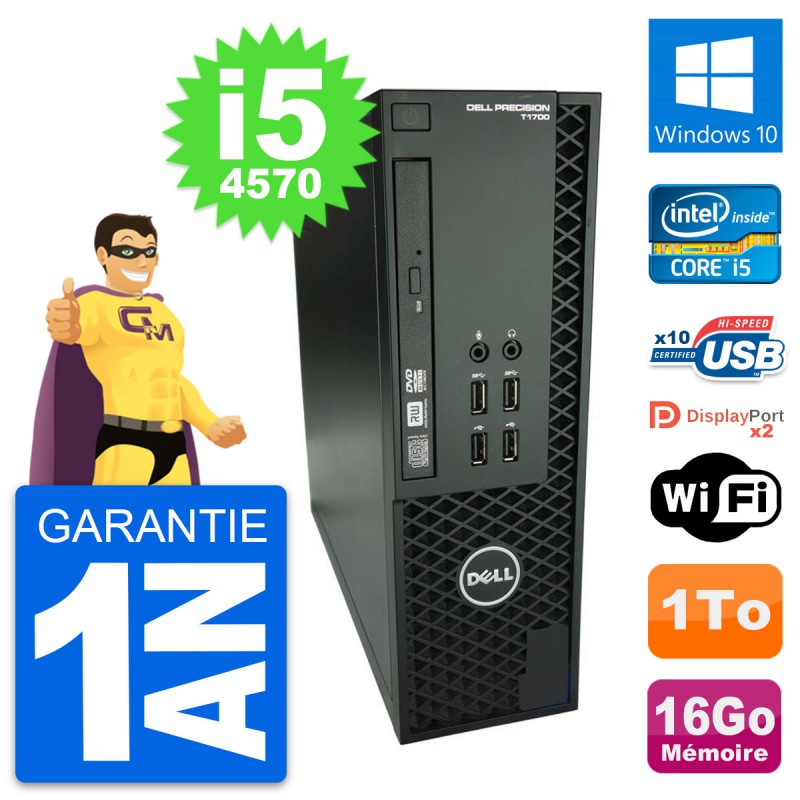 PC Dell Precision T1700 SFF (Slim) - Intel Core i5-4570 3.2 Ghz (6 Mo) - 16 Go DDR3 - Disque Dur 3,5" 1 To - Graveur DVD - Clef Wifi USB - Windows 10 - Garantie 1 an.