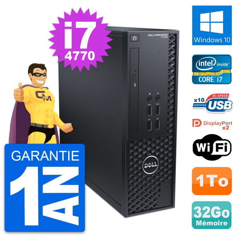 PC Dell Precision T1700 SFF (Slim) - Intel Core i7-4770 3.4 Ghz (8 Mo) - 32 Go DDR3 - Disque Dur 3,5" 1 To - Graveur DVD - Clef Wifi USB - Windows 10 - Garantie 1 an.
