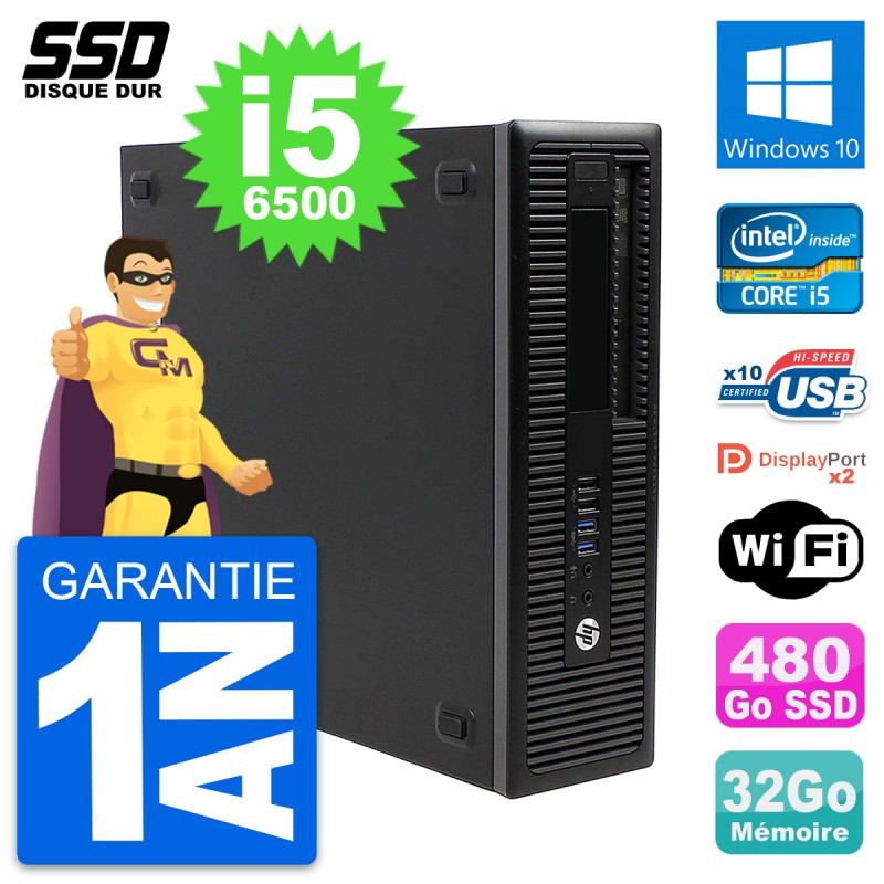 PC HP EliteDesk 800 G2 SFF Intel Core i5-6500 RAM 32Go SSD 480Go Windows 10 Wifi