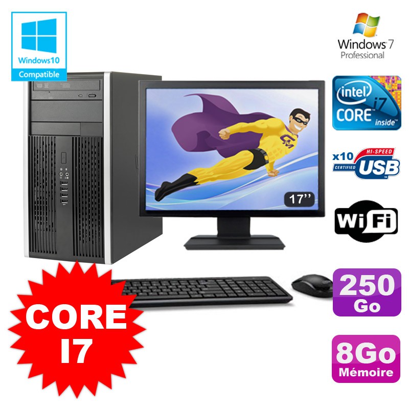 Lot PC Tour HP Elite 8200 Core I7 3,4Ghz 8Go 250Go Graveur WIFI W7 + Ecran 17