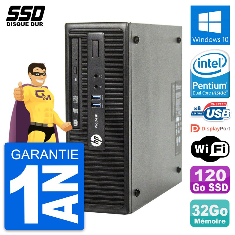 PC HP ProDesk 400 G3 SFF - Intel Pentium Dual-Core G4400 3.3 Ghz (3 Mo) - 32 Go DDR4 - Disque Dur SSD 120 Go - Graveur DVD - Clef Wifi USB - Windows 10 - Garantie 1 an.