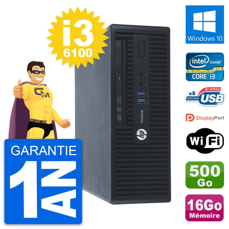 PC HP ProDesk 400 G3 SFF Intel i3-6100 RAM 16Go Disque 500Go Windows 10 Wifi
