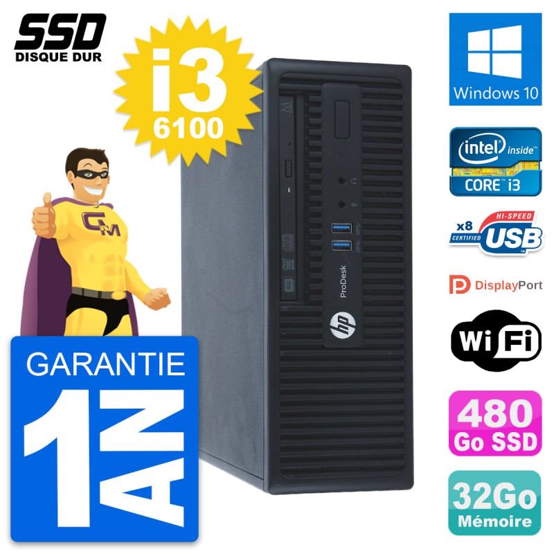 PC HP ProDesk 400 G3 SFF Intel Core i3-6100 RAM 32Go SSD 480Go Windows 10 Wifi