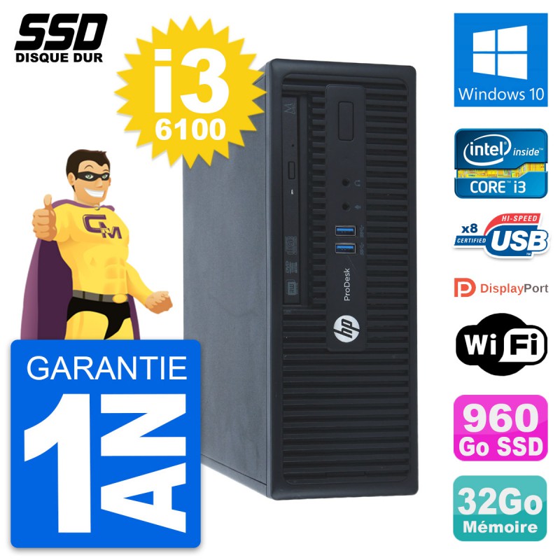 PC HP ProDesk 400 G3 SFF Intel Core i3-6100 RAM 32Go SSD 960Go Windows 10 Wifi