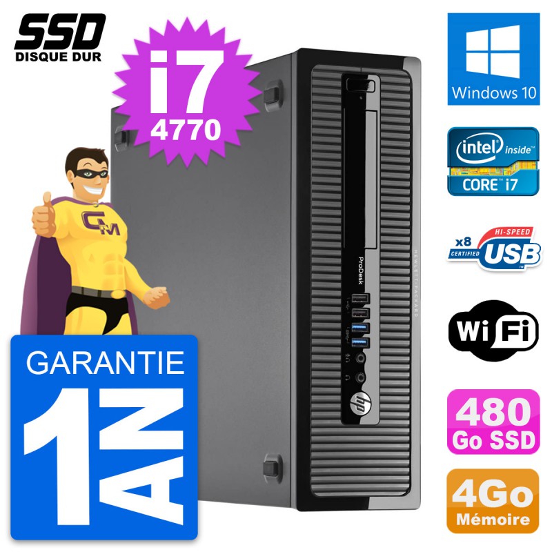 PC HP ProDesk 400 G1 SFF Intel Core i7-4770 RAM 4Go SSD 480Go Windows 10 Wifi