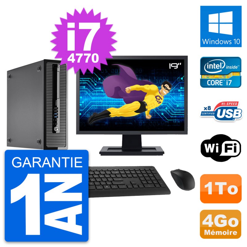 PC HP ProDesk 400 G1 SFF Ecran 19" i7-4770 RAM 4Go Disque 1To Windows 10 Wifi