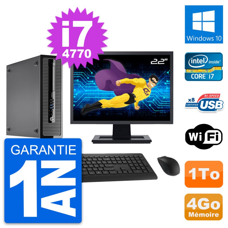 PC HP ProDesk 400 G1 SFF Ecran 22" i7-4770 RAM 4Go Disque 1To Windows 10 Wifi