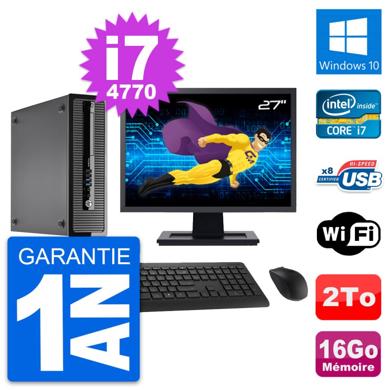PC HP ProDesk 400 G1 SFF Ecran 27" i7-4770 RAM 16Go Disque 2To Windows 10 Wifi