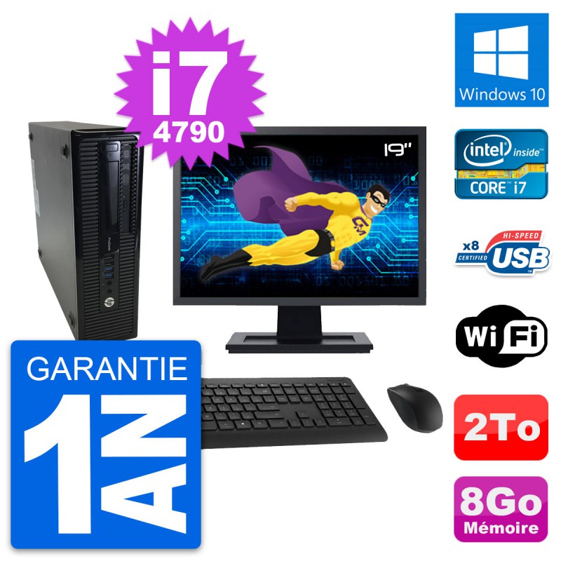 PC HP ProDesk 400 G1 SFF Ecran 19" i7-4790 RAM 8Go Disque 2To Windows 10 Wifi