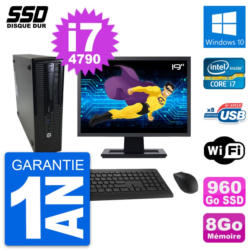 PC HP ProDesk 400 G1 SFF Ecran 19" i7-4790 RAM 8Go SSD 960Go Windows 10 Wifi