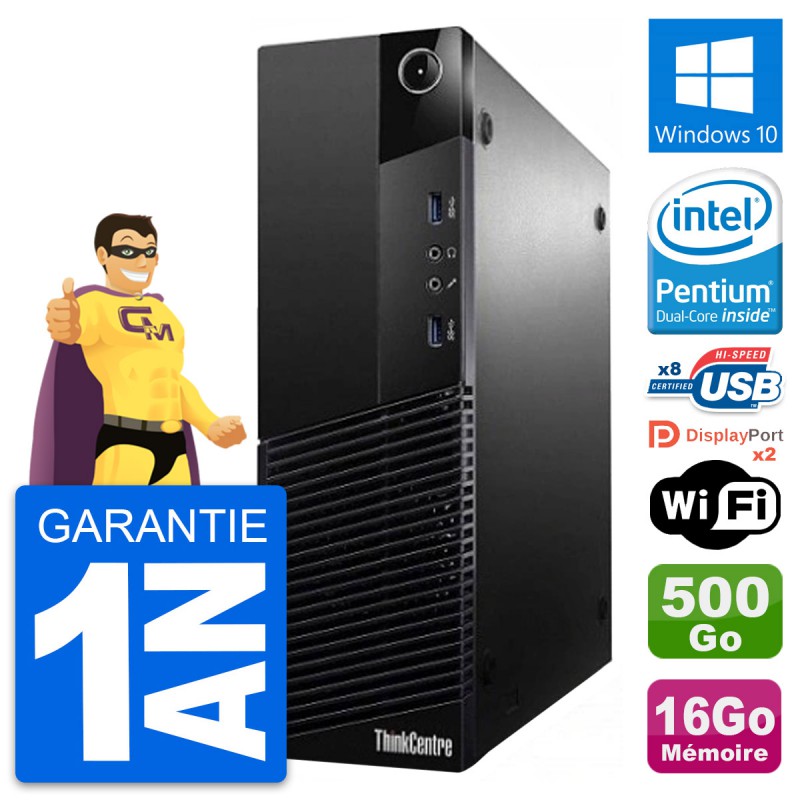 PC Lenovo ThinkCentre M83 SFF - Intel Pentium Dual-Core G3220 3.0 Ghz (3 Mo) - 16 Go DDR3 - Disque Dur 3,5" 500 Go - Clef Wifi USB - Windows 10 - Garantie 1 an.