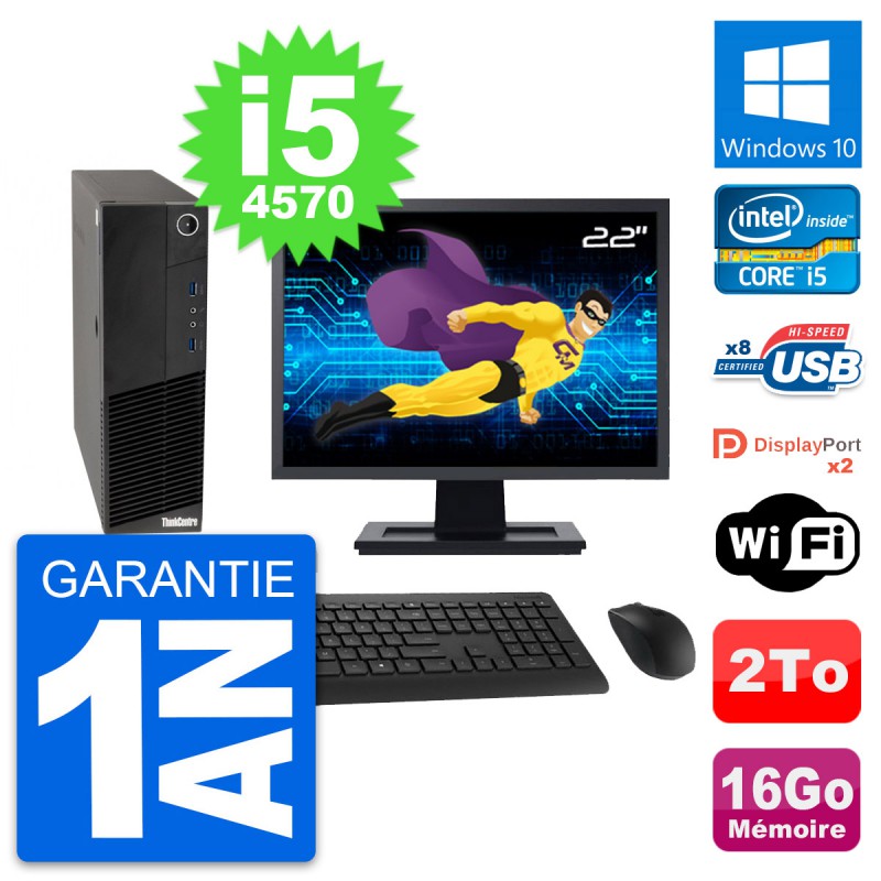 PC Lenovo M83 SFF Ecran 22" Core i5-4570 RAM 16Go Disque Dur 2To Windows 10 Wifi