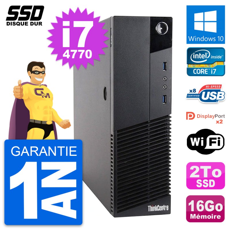PC Lenovo ThinkCentre M83 SFF - Intel Core i7-4770 3.4 Ghz (8 Mo) - 16 Go DDR3 - SSD 2 To - Clef Wifi USB - Windows 10 - Garantie 1 an.