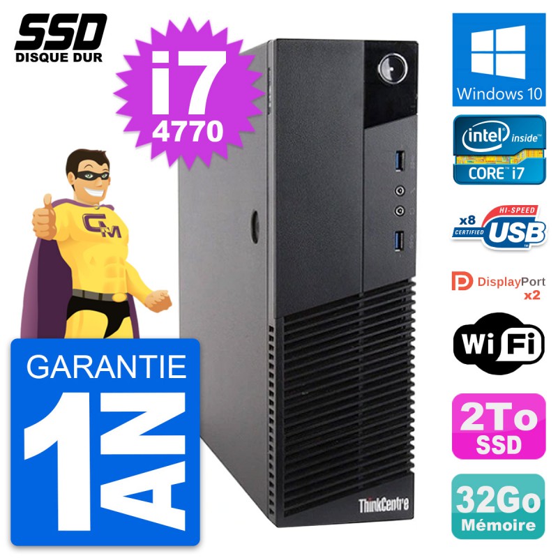 PC Lenovo ThinkCentre M83 SFF - Intel Core i7-4770 3.4 Ghz (8 Mo) - 32 Go DDR3 - SSD 2 To - Clef Wifi USB - Windows 10 - Garantie 1 an.