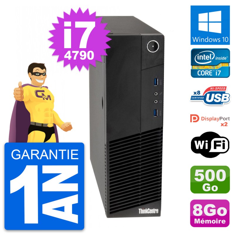 PC Lenovo ThinkCentre M83 SFF - Intel Core i7-4790 3.6 Ghz (8 Mo) - 8 Go DDR3 - Disque Dur 3,5" 500 Go - Clef Wifi USB - Windows 10 - Garantie 1 an.