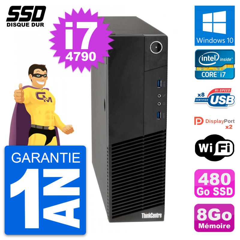 PC Lenovo ThinkCentre M83 SFF - Intel Core i7-4790 3.6 Ghz (8 Mo) - 8 Go DDR3 - SSD 480 Go - Clef Wifi USB - Windows 10 - Garantie 1 an.