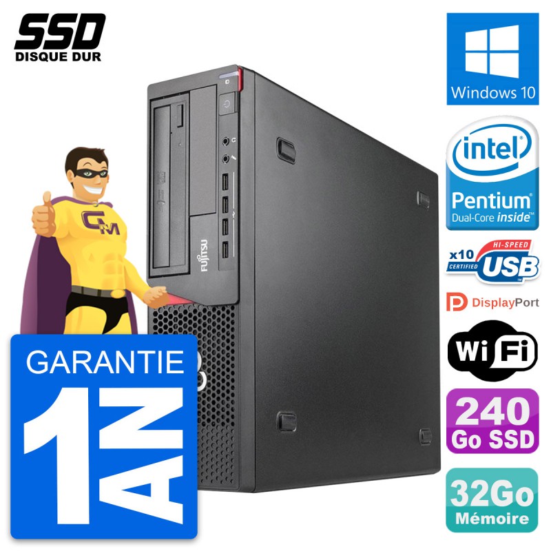 PC Fujitsu Esprimo E920 DT - Intel Pentium Dual-Core G3220 3.0 Ghz (3 Mo) - 32 Go DDR3 - SSD 240 Go - Graveur DVD - Clef Wifi USB - Windows 10 - Garantie 1 an.