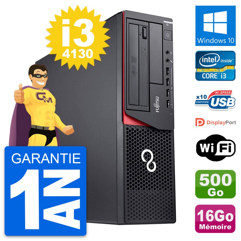 PC Fujitsu Esprimo E920 DT - Intel Core i3-4130 3.4 Ghz (3 Mo) - 16 Go DDR3 - Disque Dur 3,5" 500 Go - Graveur DVD - Clef Wifi USB - Windows 10 - Garantie 1 an.