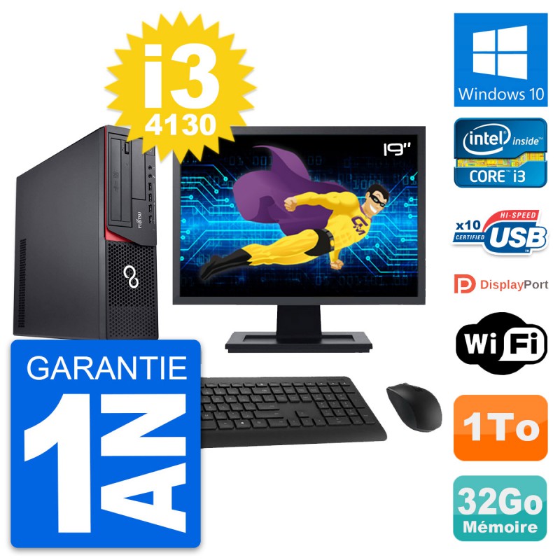 PC Fujitsu E920 DT Ecran 19" Intel i3-4130 RAM 32Go Disque 1To Windows 10 Wifi