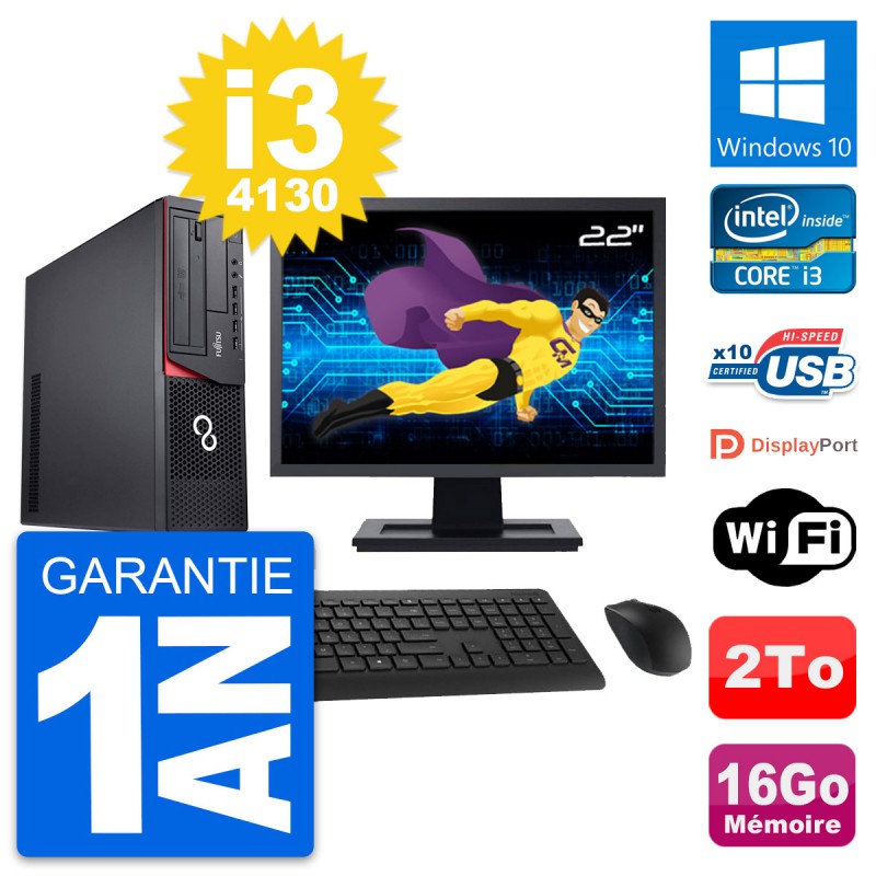 PC Fujitsu Esprimo E920 DT - Intel Core i3-4130 3.4 Ghz (3 Mo) - 16 Go DDR3 - Disque Dur 3,5" 2 To - Graveur DVD - Clef Wifi USB - Windows 10 - Livré avec Ecran 22" + clavier + souris (Marques et modèles variables) - Garantie 1 an.