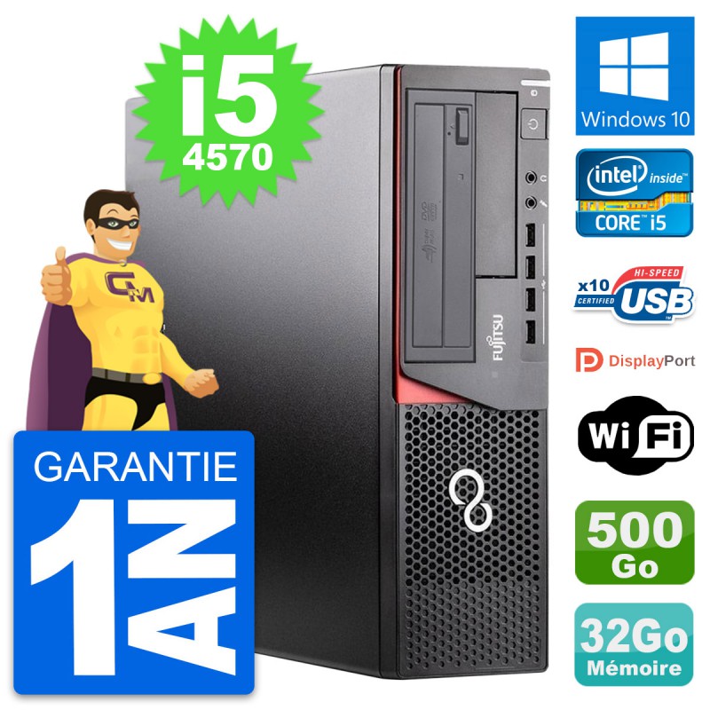 PC Fujitsu Esprimo E920 DT - Intel Core i5-4570 3.2 Ghz (6 Mo) - 32 Go DDR3 - Disque Dur 3,5" 500 Go - Graveur DVD - Clef Wifi USB - Windows 10 - Garantie 1 an.