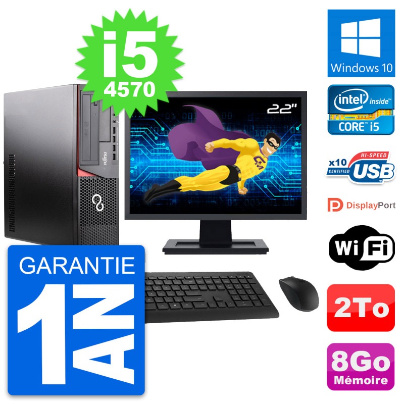 PC Fujitsu E920 DT Ecran 22" Intel i5-4570 RAM 8Go Disque 2To Windows 10 Wifi