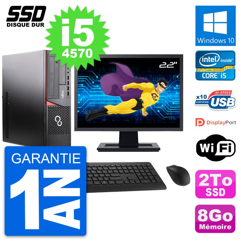 PC Fujitsu E920 DT Ecran 22" Intel Core i5-4570 RAM 8Go SSD 2To Windows 10 Wifi
