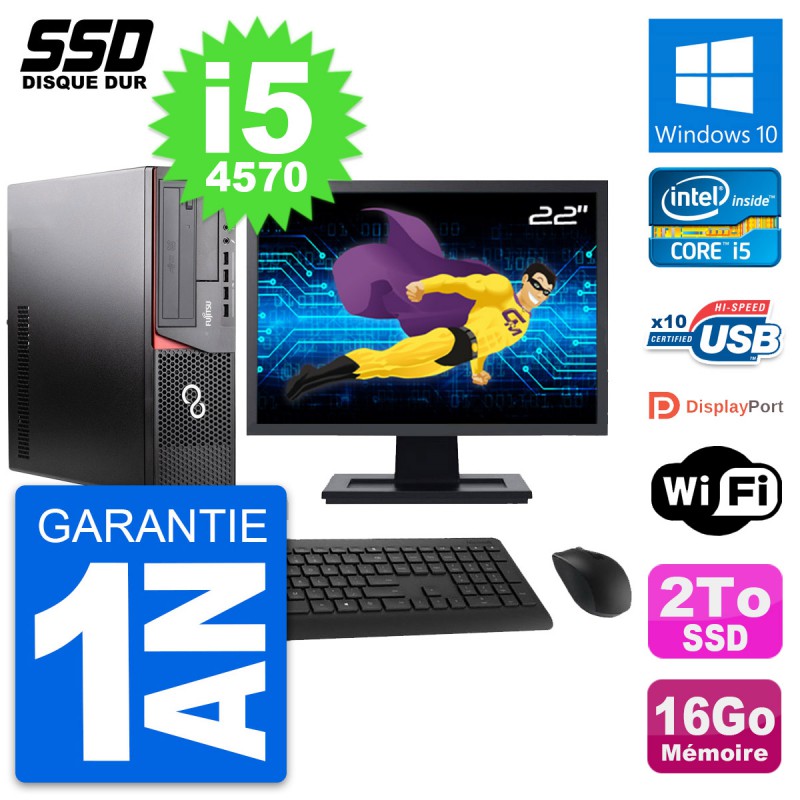 PC Fujitsu E920 DT Ecran 22" Intel Core i5-4570 RAM 16Go SSD 2To Windows 10 Wifi