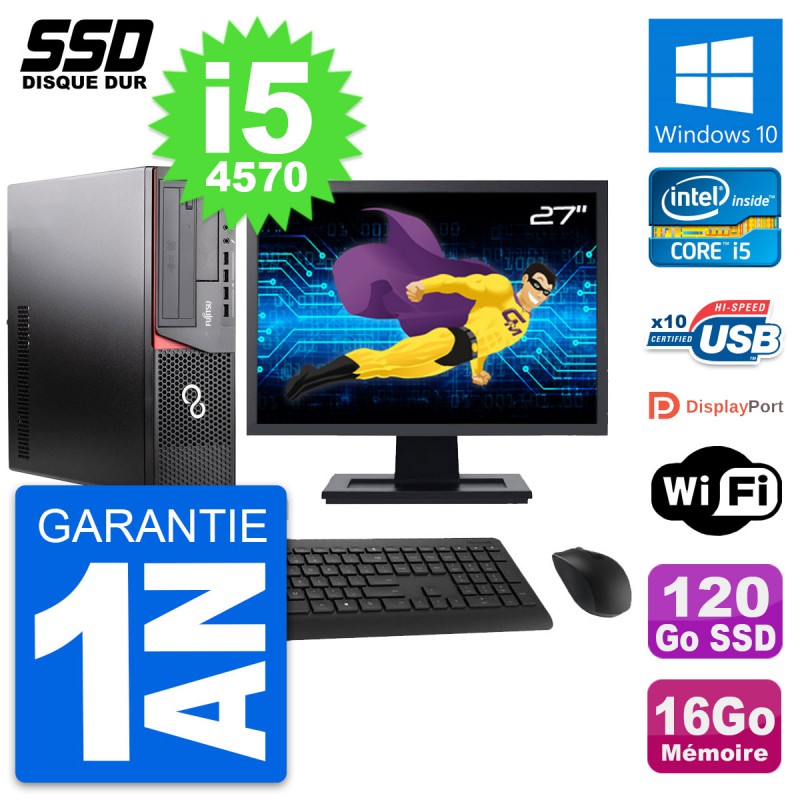 PC Fujitsu Esprimo E920 DT - Intel Core i5-4570 3.2 Ghz (6 Mo) - 16 Go DDR3 - SSD 120 Go - Graveur DVD - Clef Wifi USB - Windows 10 - Livré avec Ecran 27" + clavier + souris (Marques et modèles variables) - Garantie 1 an.