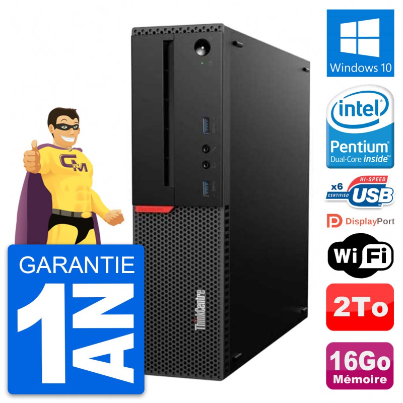 PC Lenovo ThinkCentre M700 SFF - Intel Pentium Dual-Core G4400 3.3 Ghz (3 Mo) - 16 Go DDR4 - Disque Dur 3,5" 2 To - Clef Wifi USB - Windows 10 - Garantie 1 an.
