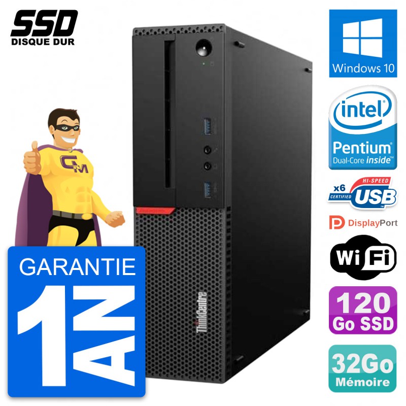 PC Lenovo ThinkCentre M700 SFF - Intel Pentium Dual-Core G4400 3.3 Ghz (3 Mo) - 32 Go DDR4 - SSD 120 Go - Clef Wifi USB - Windows 10 - Garantie 1 an.