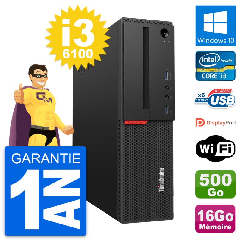 PC Lenovo ThinkCentre M700 SFF i3-6100 RAM 16Go Disque 500Go Windows 10 Wifi