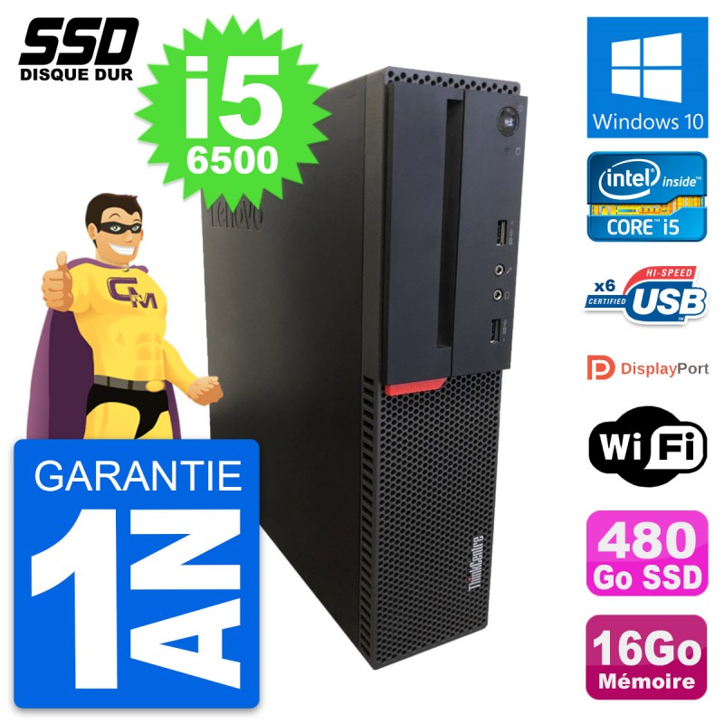 PC Lenovo ThinkCentre M700 SFF Intel i5-6500 RAM 16Go SSD 480Go Windows 10 Wifi
