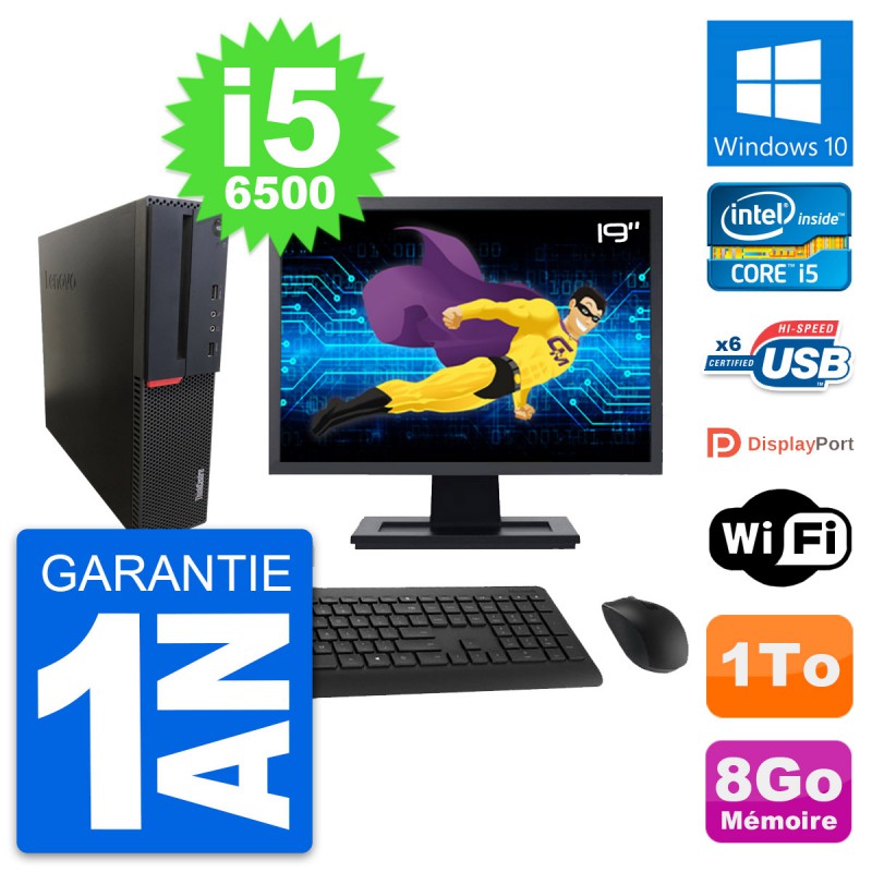 PC Lenovo ThinkCentre M700 SFF - Intel Core i5-6500 3.2 Ghz (6 Mo) - 8 Go DDR4 - Disque Dur 3,5" 1 To - Clef Wifi USB - Windows 10 - Livré avec Ecran 19" + clavier + souris (Marques et modèles variables) - Garantie 1 an.