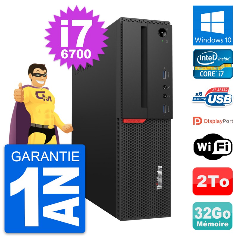 PC Lenovo ThinkCentre M700 SFF Intel i7-6700 RAM 32Go Disque 2To Windows 10 Wifi