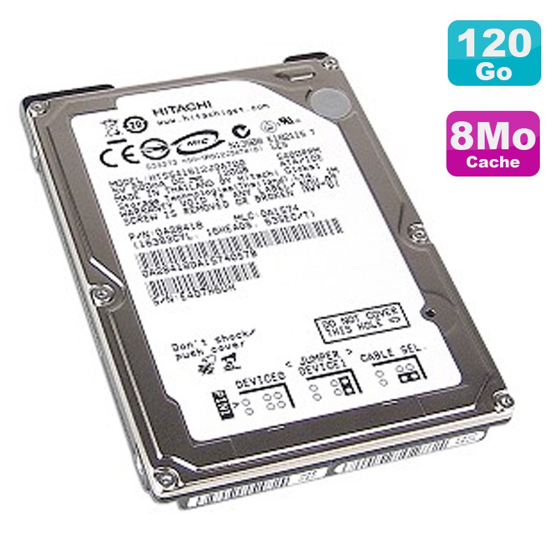 Disque dur IDE ATA Hitachi Travelstar 2.5" - HTS541612J9AT00 - 120Go - 5400 tours/min - 8Mo de cache - Garantie 6 mois