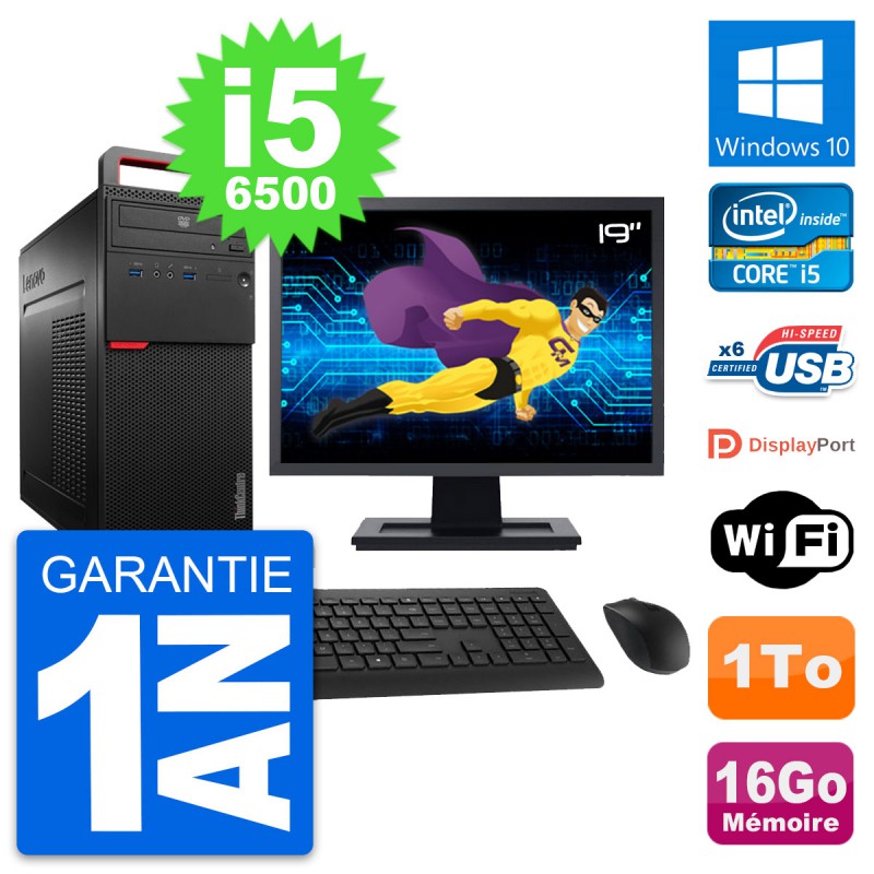 PC Tour Lenovo ThinkCentre M700 - Intel Core i5-6500 3.2 Ghz (6 Mo) - 16 Go DDR4 - Disque Dur 3,5" 1 To - Graveur DVD - Clef Wifi USB - Windows 10 - Livré avec Ecran 19" + clavier + souris (Marques et modèles variables) - Garantie 1 an.
