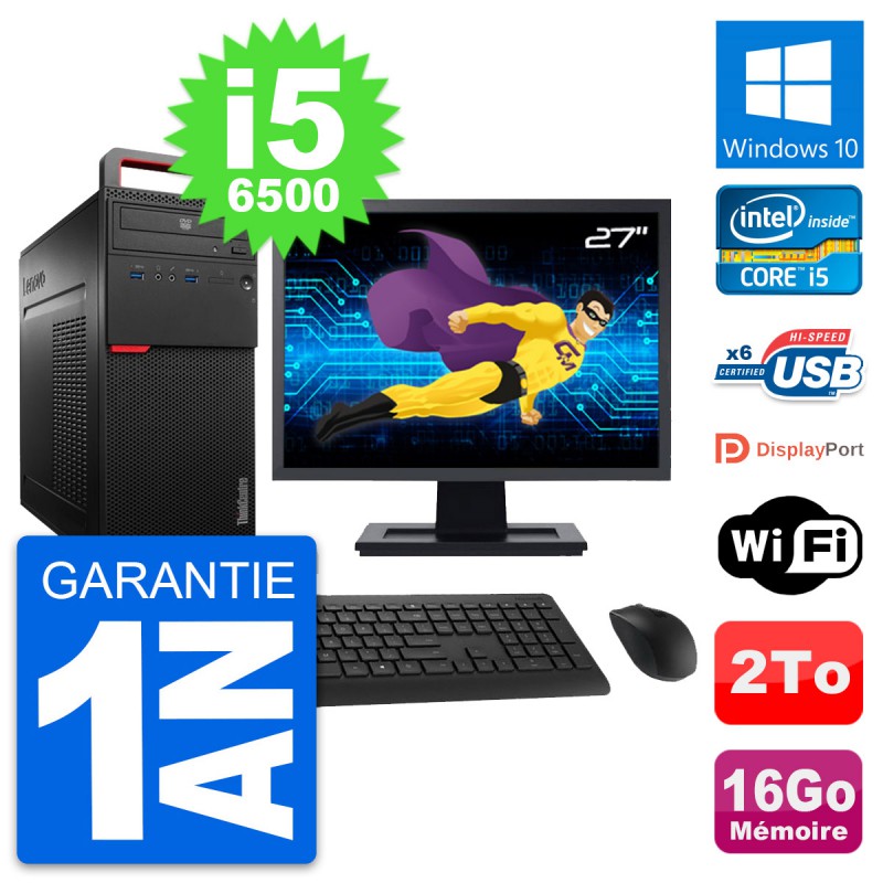 PC Tour Lenovo ThinkCentre M700 - Intel Core i5-6500 3.2 Ghz (6 Mo) - 16 Go DDR4 - Disque Dur 3,5" 2 To - Graveur DVD - Clef Wifi USB - Windows 10 - Livré avec Ecran 27" + clavier + souris (Marques et modèles variables) - Garantie 1 an.