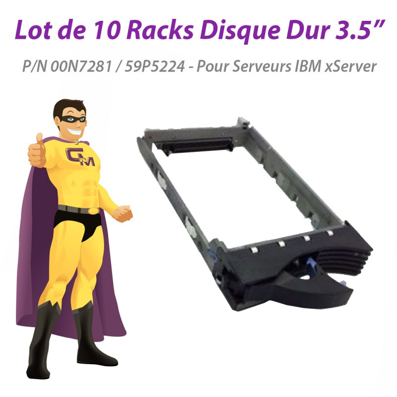 Lot de 10 Racks métalliques pour Disque Dur 3.5" SCSI - IBM - P/N 00N7281 / 59P5224 - Pour Serveur IBM xServer, eSeries et Netfinity - Garantie 6 mois.