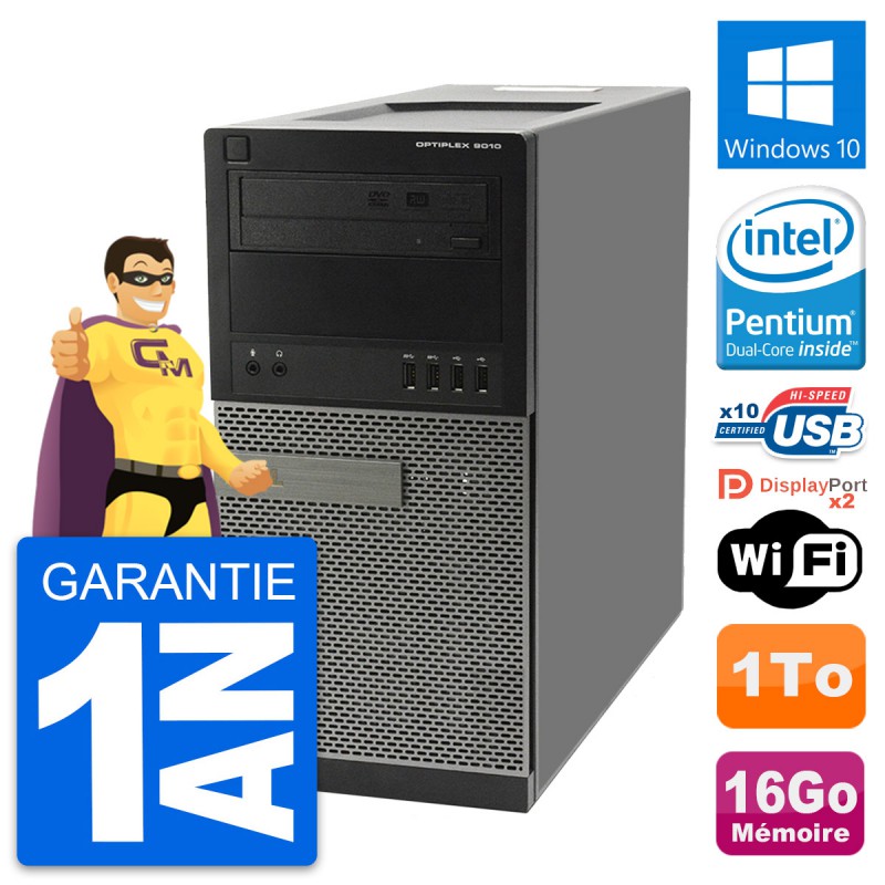 PC Tour Dell OptiPlex 9010 - Intel Pentium Dual-Core G630 2.7 Ghz (3 Mo) - 16 Go DDR3 - Disque Dur 3,5" 1 To - Graveur DVD - Clef Wifi USB - Windows 10 - Garantie 1 an.