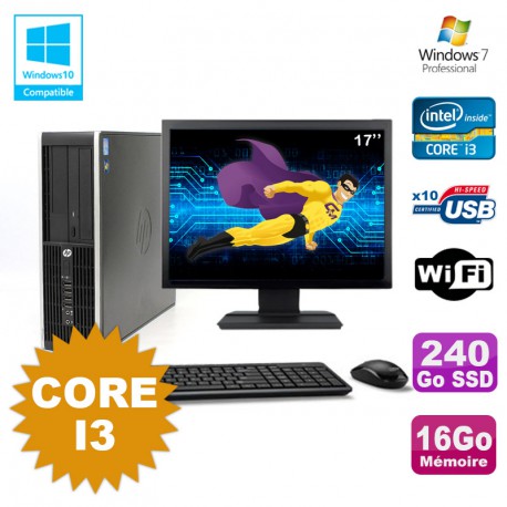Lot PC HP Compaq 6200 Pro SFF Core i3 3.1GHz 16Go 240Go SSD DVD WIFI W7 + Ecran 17