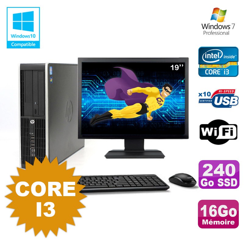 Lot PC HP Compaq 6200 Pro SFF Core i3 3.1GHz 16Go 240Go SSD DVD WIFI W7 + Ecran 19