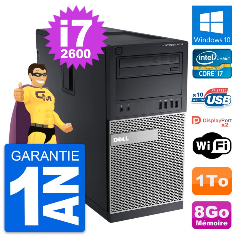 PC Tour Dell OptiPlex 9010 Intel Core i7-2600 RAM 8Go Disque 1To Windows 10 Wifi