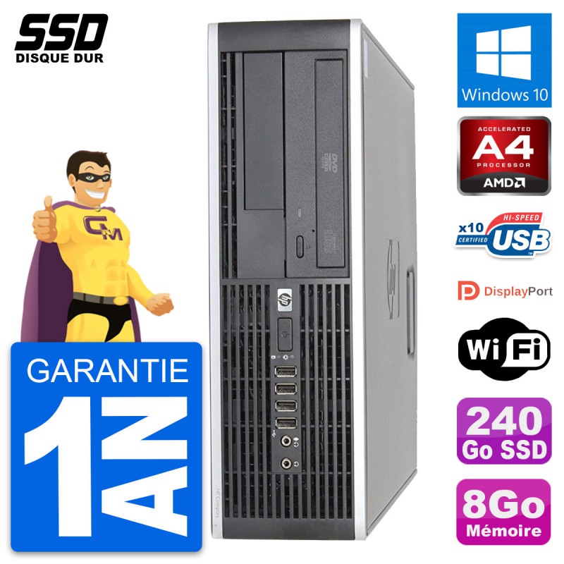 PC HP Compaq 6305 Pro SFF - AMD A4-Series A4-5300B 3.4 Ghz (1 Mo) - 8 Go DDR3 - SSD 240 Go - Graveur DVD - Clef Wifi USB - Windows 10 - Garantie 1 an.