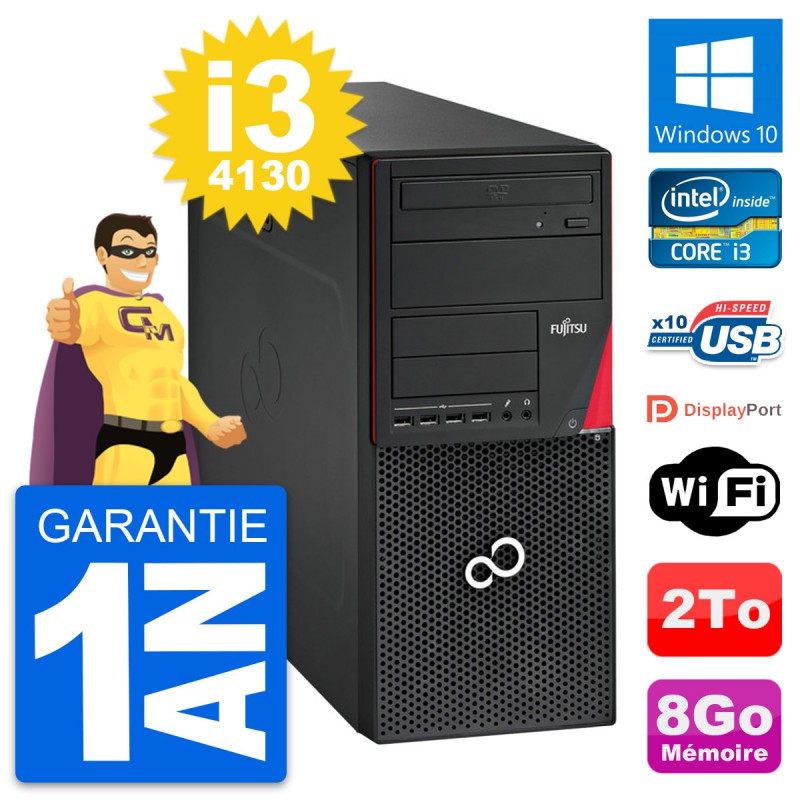 PC Tour Fujitsu Esprimo P720 - Intel Core i3-4130 3.4 Ghz (3 Mo) - 8 Go DDR3 - Disque Dur 3,5" 2 To - Graveur DVD - Clef Wifi USB - Windows 10 - Garantie 1 an.